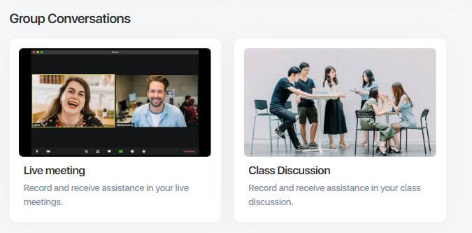 Purpose: This mode is intended for real-time speech analysis during group settings, such as online meetings or discussions.