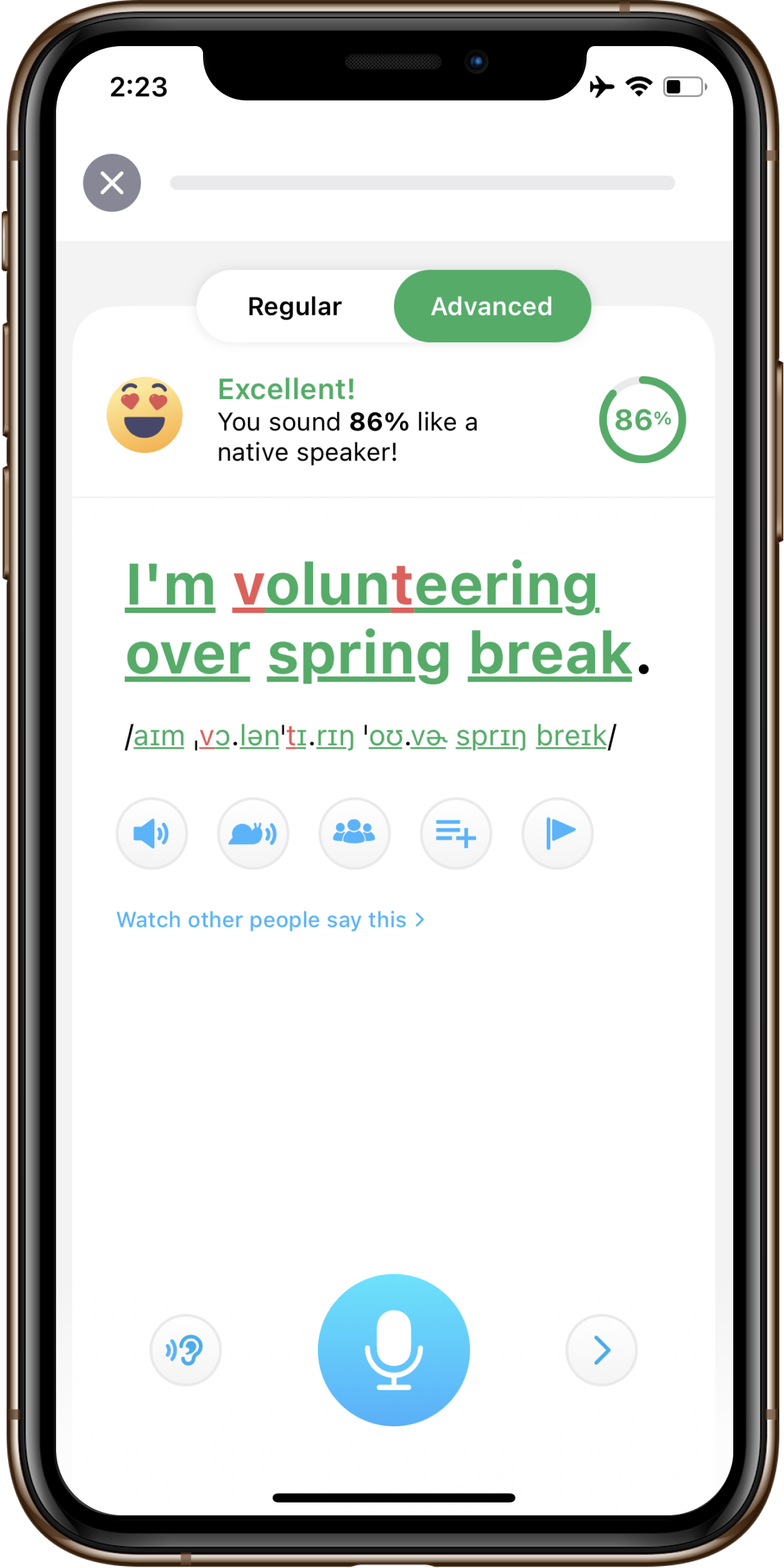 Speak any word and get instant feedback to improve your pronunciation and speaking skills.