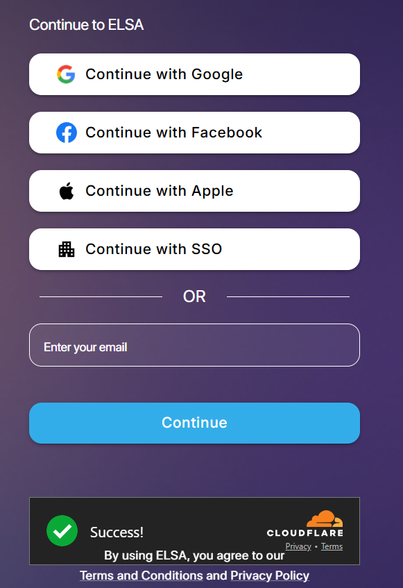 After you have installed the ELSA app into your device, you can log in to your ELSA account to study.