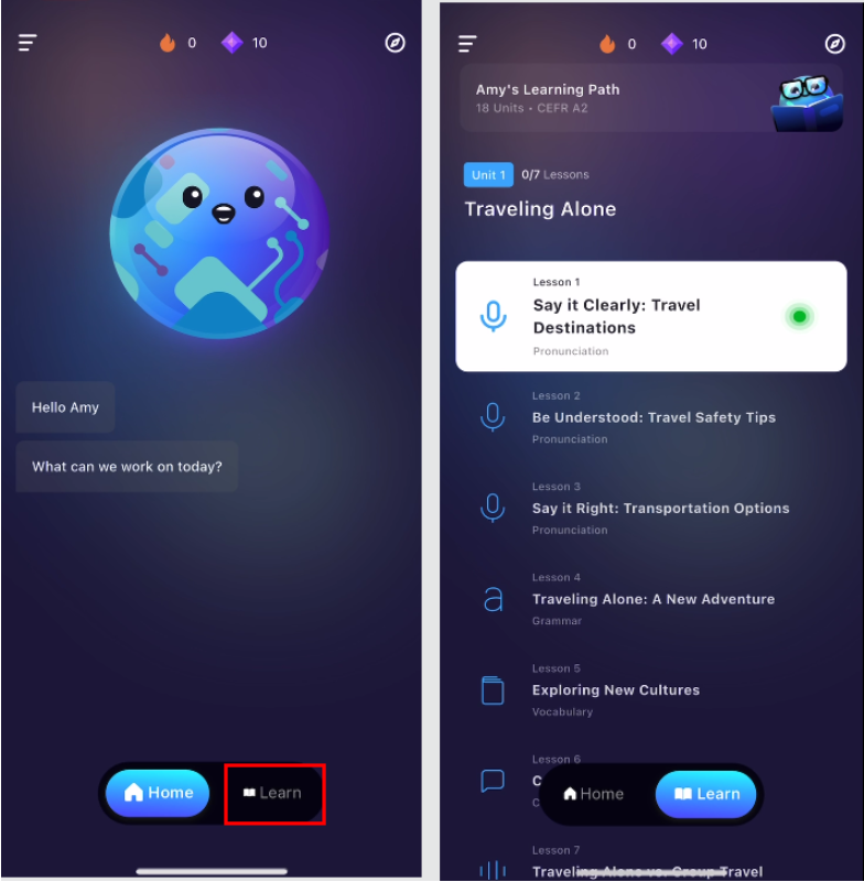 Following the onboarding steps, your personalized plan will be ready for you in the Learn tab.