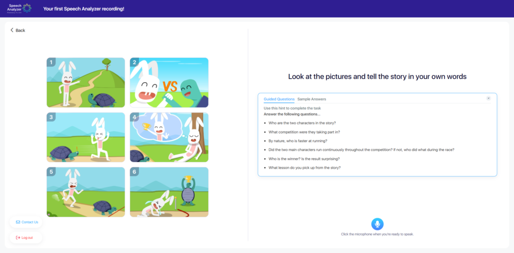 As a guide to show you how Speech Analyzer works, you will be given some pictures and hints for a story. Try to re-tell the story in your own words and record your speech.