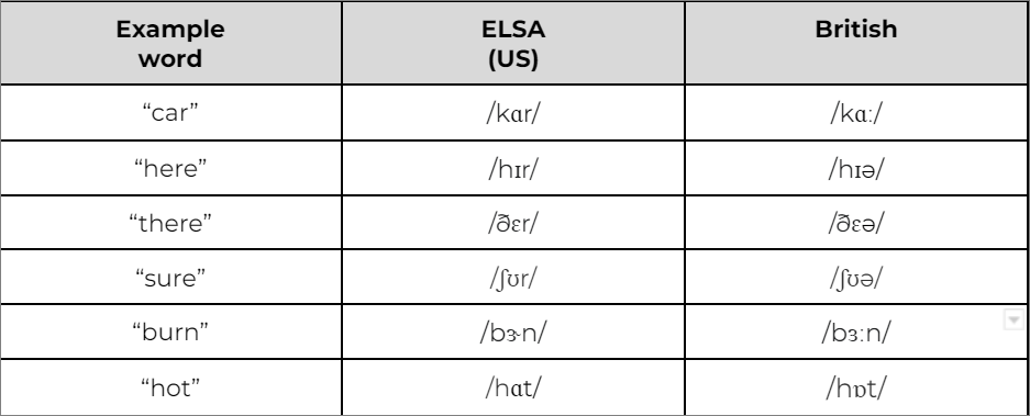 If the sources you are consulting use a schwa to represent the pronunciation of the letter “R” their focus is probably on British English. Same thing if you see the symbol /ɒ/, in a word like “hot”. At this point, ELSA does not support these symbols, but only those that represent US English pronunciations.