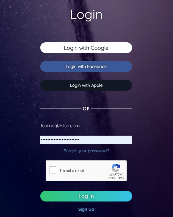 2. Log in to your ELSA account using an option, depending on the login credentials that you used to register an account.